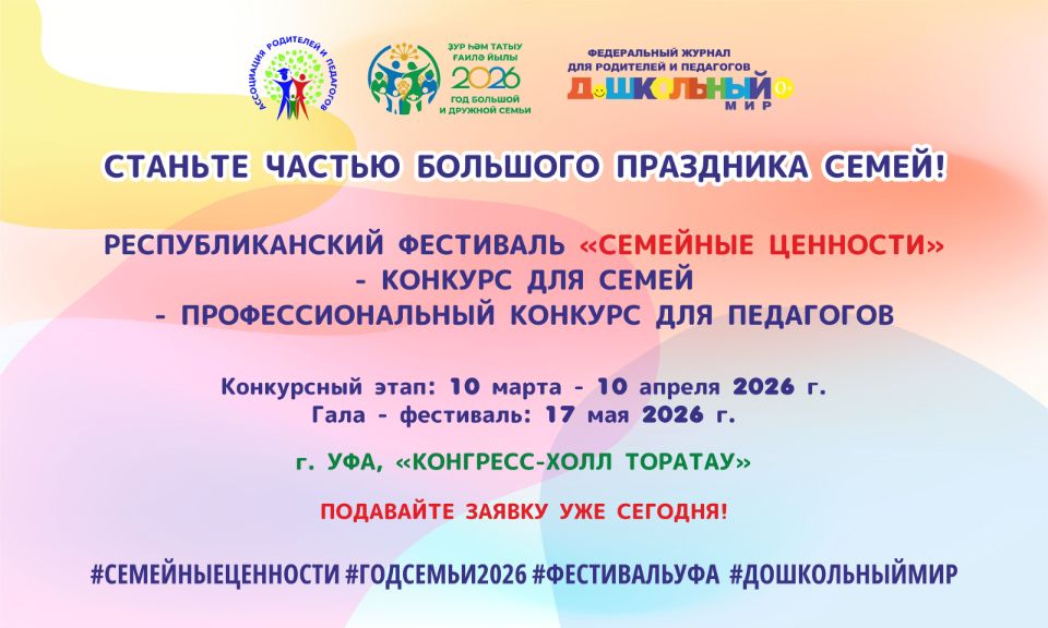 Положение фестиваля по ссылке: clck.ru/3SuePY. Организатором выступает Ассоциация родителей и педагогов РБ.