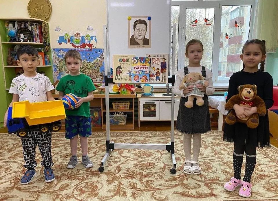 В мире весёлой поэзии Агнии Барто побывали воспитанники детских садов № 240, 294, 237, 226. Ребята узнали много интересного о жизни поэтессы, рассказали стихи «Идет бычок качается», «Зайку бросила хозяйка», «Я люблю свою лошадку», участвовали в викторине «Игрушки», поиграли в игры «Назови стихотворение по описанию героя», «Продолжи стихи», с удовольствием сконструировали самолет, нарисовали мячи для Тани и побывали в роли моряков.